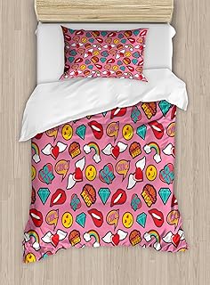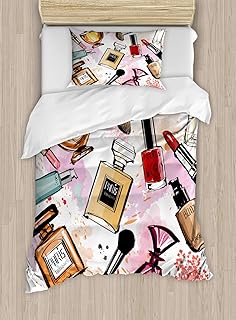 Girls布団カバーセットby Ambesonne、Cosmetic and Makeupテーマパターン香水リップスティックネイルポリッシュブラシModern Lady、装飾寝具セット枕のカバー、マルチカラー TWIN / TWIN XL nev_19102_twin
