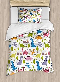 子供用布団カバーセットby Ambesonne、漫画スタイルカラフルな素敵な恐竜T - Rex Triceratops Prehistoric Reptile Wildlife、装飾寝具セット枕のカバー、マルチカラー TWIN / TWIN XL nev_47608_twin