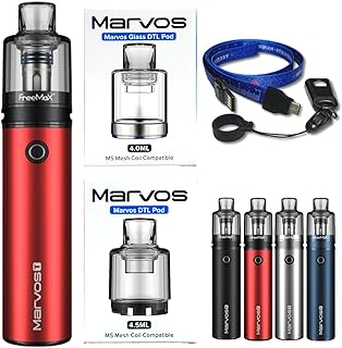 【Marvos T 4点セット】Freemax Marvos T 80W Pod Kit + ガラスPOD1個 + 予備PCTG POD 1個 + USB Type-C 充電兼用 ネックストラップ (Glass Pod + PCTG Pod + USBストラップ, Red)
