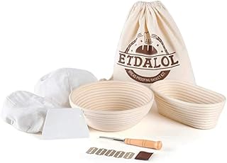 ETDALOL パンプルーフバスケット 10インチ 円形 10インチ 楕円形 2個セット インドネシア産リネン パンレーム 生地スクレーパー ブレッドバッグ 環境に優しい天然ラタン製