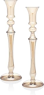 Godinger ステム付きアンバーキャンドルスティックホルダー 装飾 テーブルセンターピース ダイニングルーム - 2個セット - 10インチ