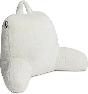 Milliard 読書用枕 細断メモリーフォーム付き ベッドに座る背もたれ枕 フェイクファー取り外し可能カバー 18x15インチ (ホワイト)