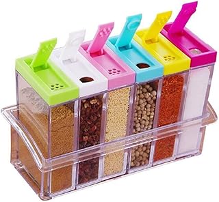 Dagali 6 pcs Jar Spice Rack Plastic Seasoning Pepper Salt Spice Masala Box Spices Case Kitchen Dining Storage Containers
