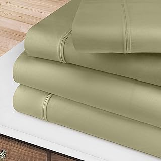 SUPERIOR 400スレッドカウント セージ エジプト綿シーツセット – 軽量 クールで通気性 – 深さ18インチまでのマットレスに対応