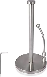 Hystun シングルティアペーパータオルホルダー カウンタートップ スタンディングペーパータオルホルダー ステンレススチール テンションアーム ペーパータオルホルダー 簡単に剥がせるペーパーロールディスペンサースタンド キッチンカウンタートップ&バスルーム用