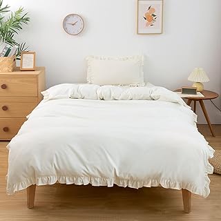 布団カバー シングル 3点セット かわいい フリル付き 寝具カバーセット 布団カバーセット ボックスシーツ 枕カバー 掛け布団カバー ピーチスキン加工 ベッド用 洗い替え速乾 アイボリー Accotia
