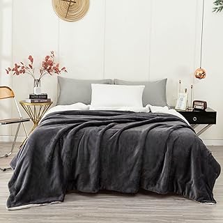 KLEVERISE シェルパフリースブランケット クイーンサイズ フラシ天 ソフト リバーシブル スーパーソフト とても暖かく快適 ファジーブランケット ソファ 旅行 アウトドア ダークグレー 924インチ