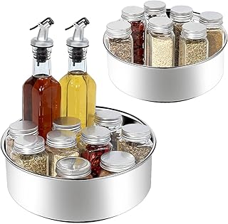 INDOMER Lazy Susan スパイスラック オーガナイザー ステンレススチール レイジー・スーザン キャビネット回転ターンテーブルストレージコンテナ キッチンパントリー カウンタートップ用 2個パック