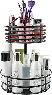 PAG 2段 メイクアップ オーガナイザー コスメ 収納 ケース ディスプレイ スタンド 多機能 レイジー・スーザン スパイスラック 360度回転 ブラック