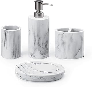 SunnyPoint フェイク マーブル バスルーム 化粧台 カウンタートップ アクセサリーセット ローション&ソープディスペンサー付き 歯ブラシホルダー バスルームタンブラー ソープディッシュ(4個セット 大理石模様)